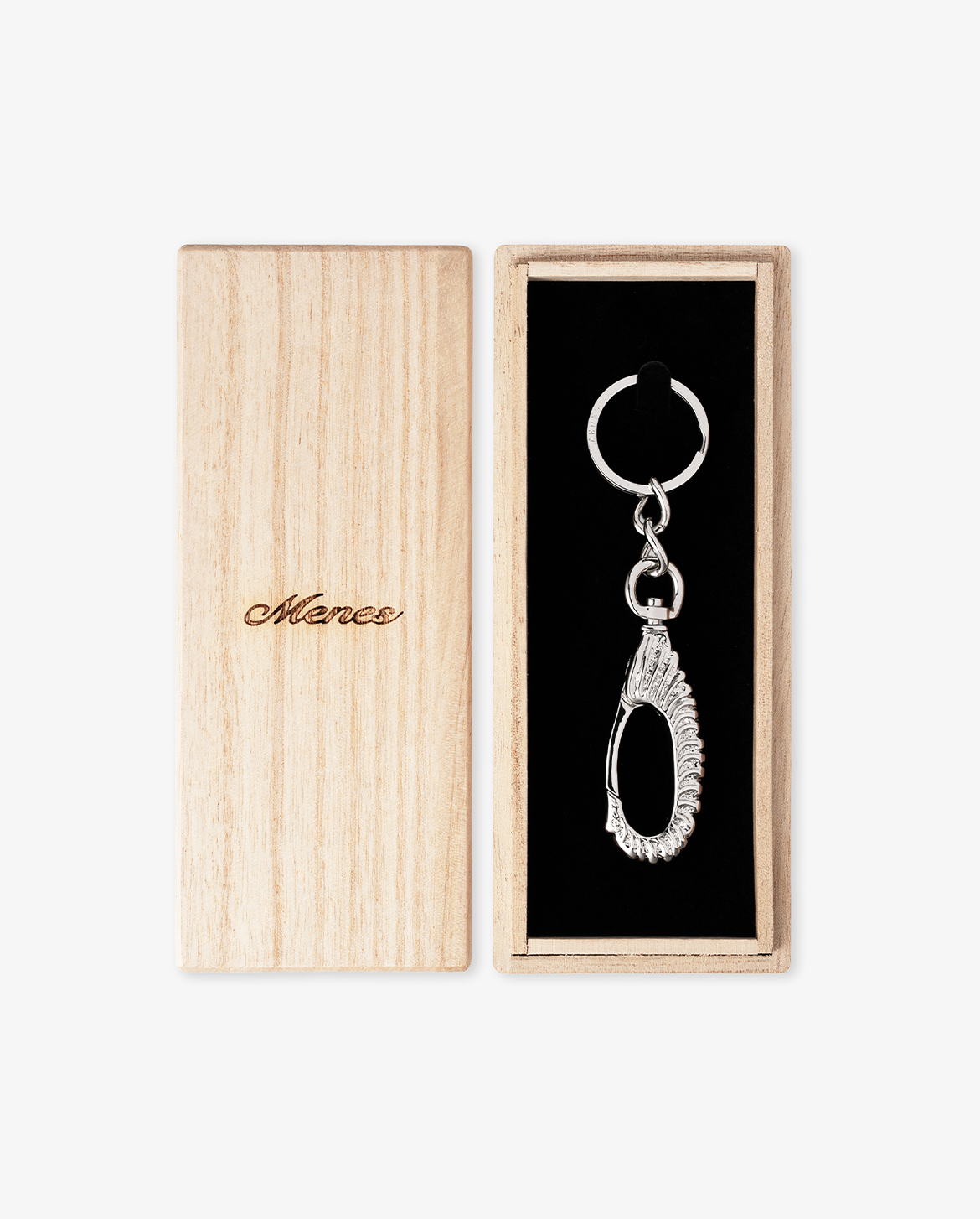 The key ring is engraved with the MENES logo, reflecting the brand’s attention to detail.