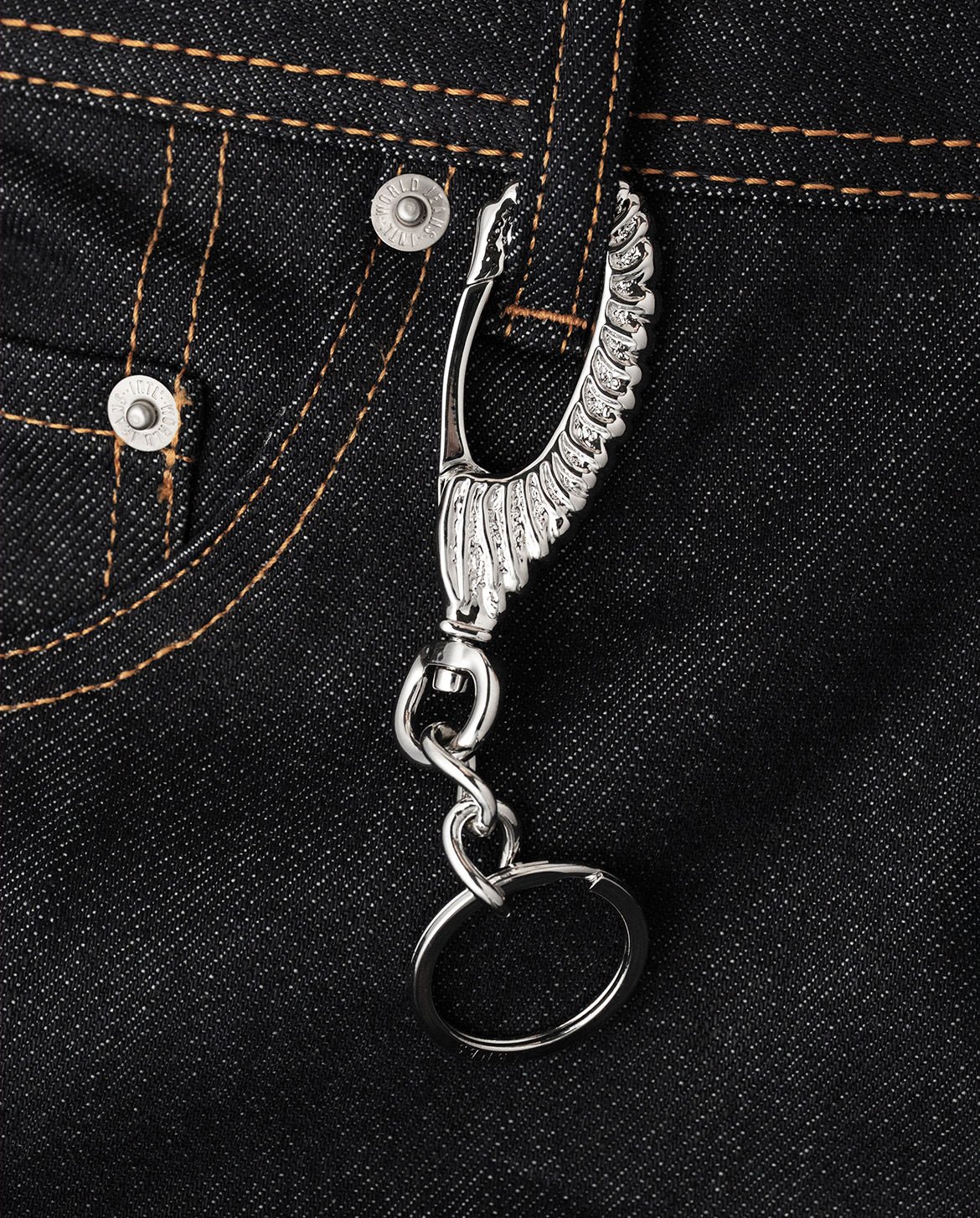 日本の「飛翼」をモチーフに、羽のようなフォルムを金属で表現したキーチェーンです。