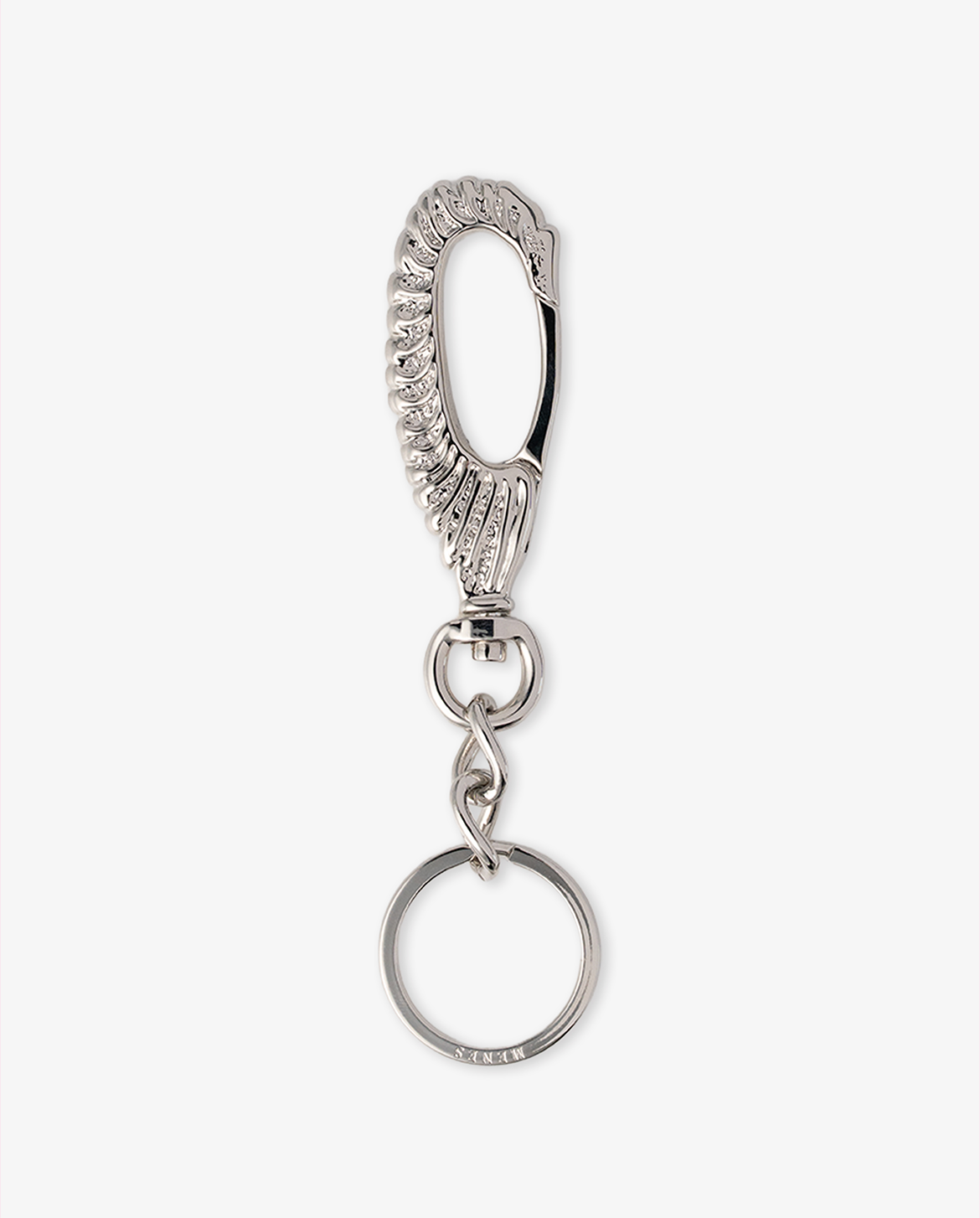 キーリングには MENES の刻印を施し、細部にまでブランドのこだわりを込めています。