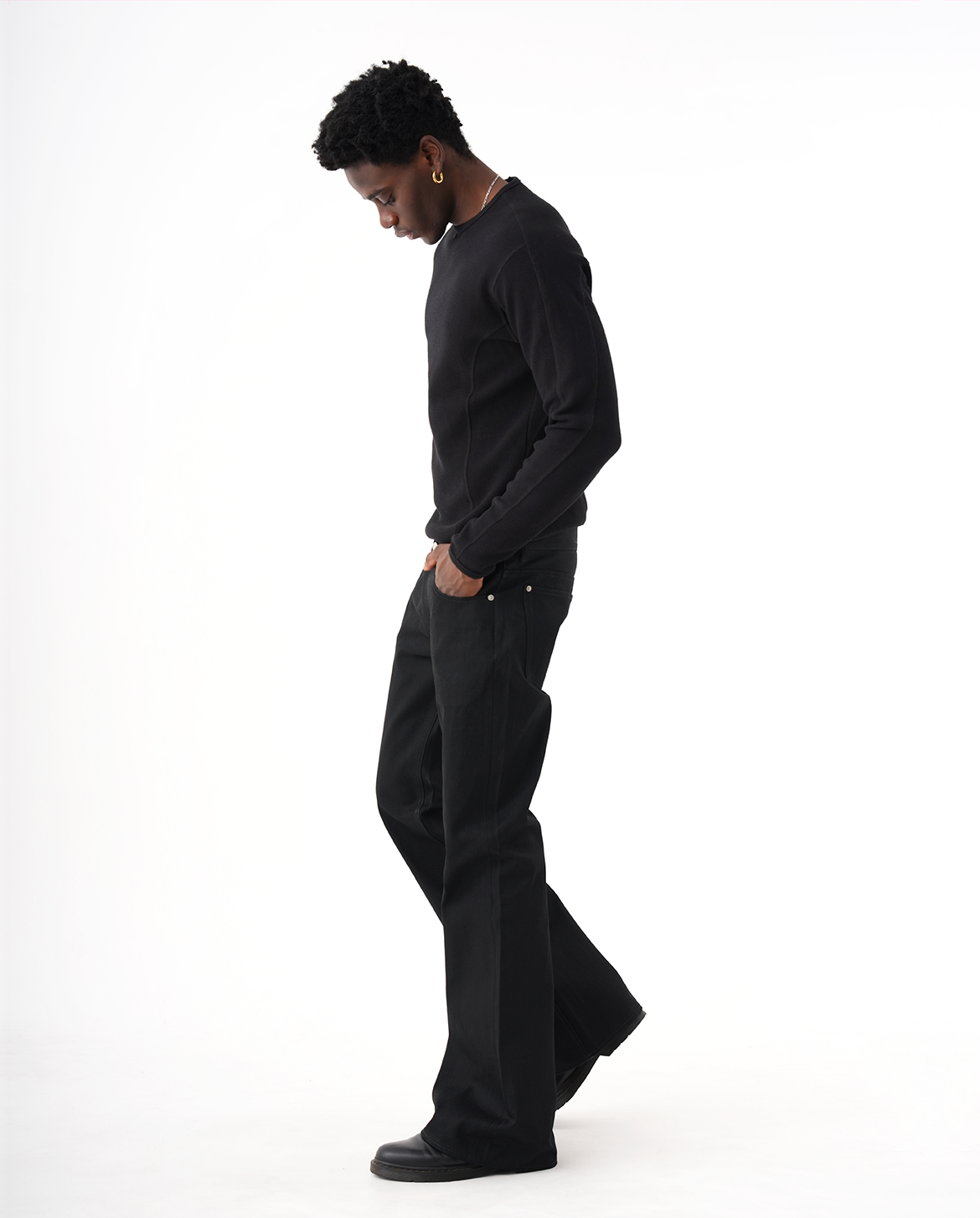 生地、縫製、スリムブーツカットシルエットのすべてにおいて妥協なく設計されており、履き込むほどに味わいが増し、ご自身だけの風合いへと育っていく一着です。